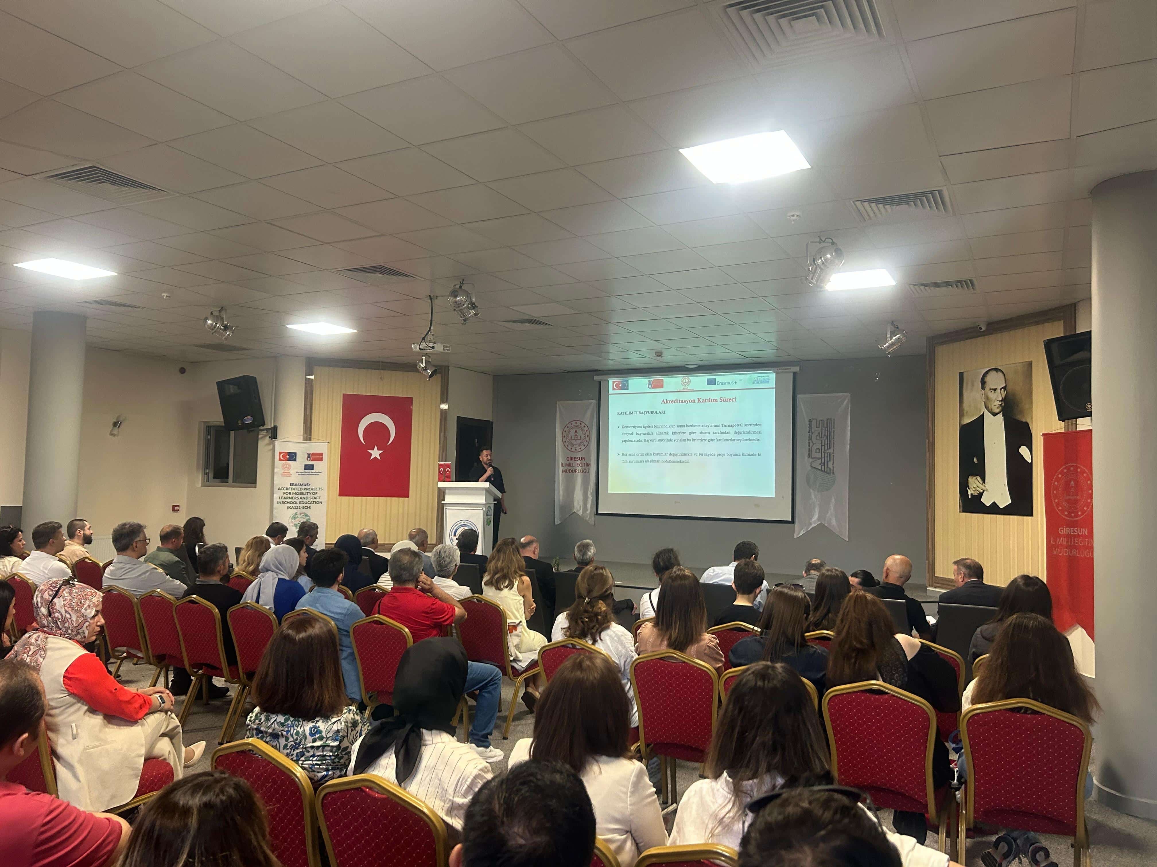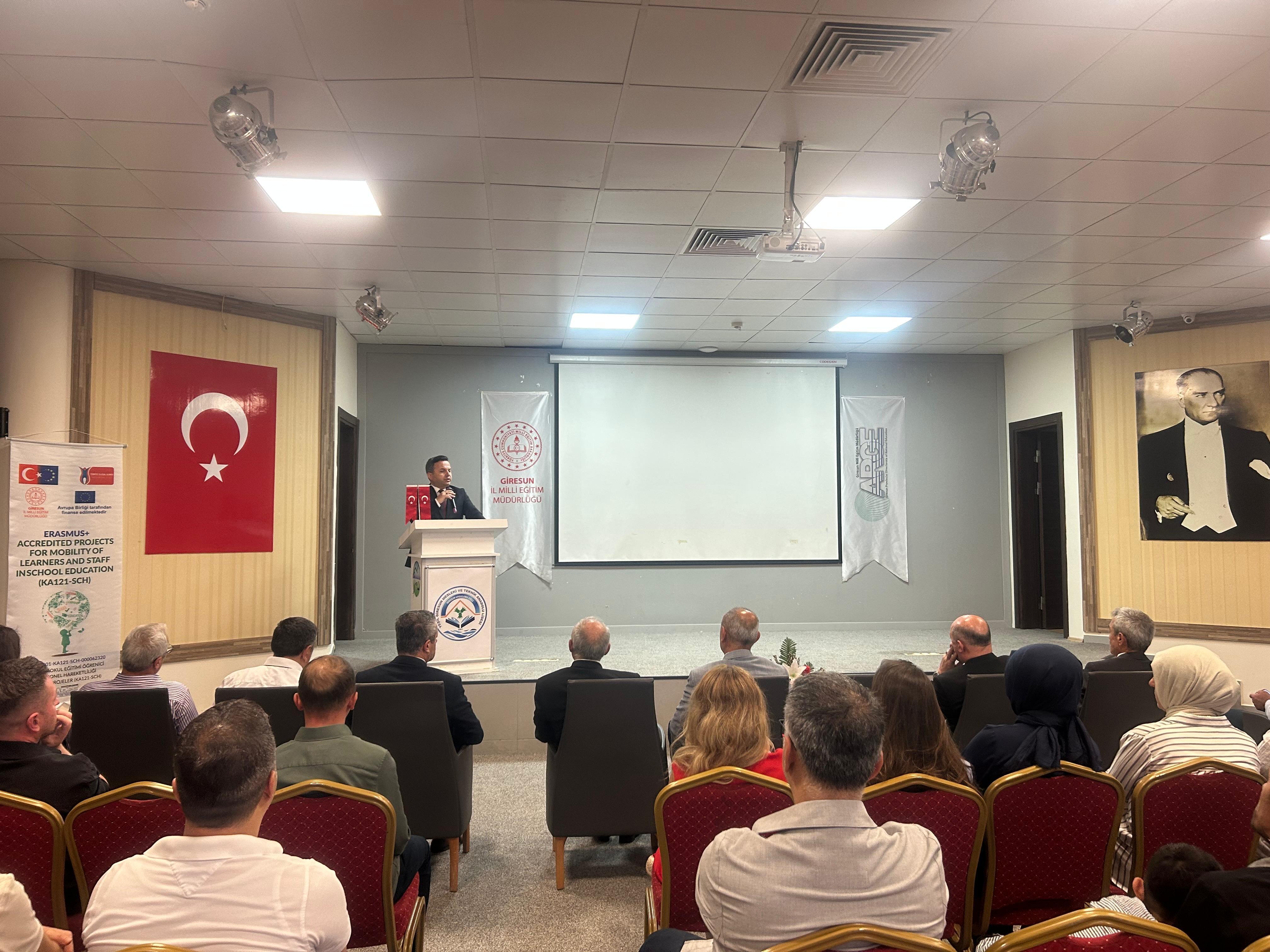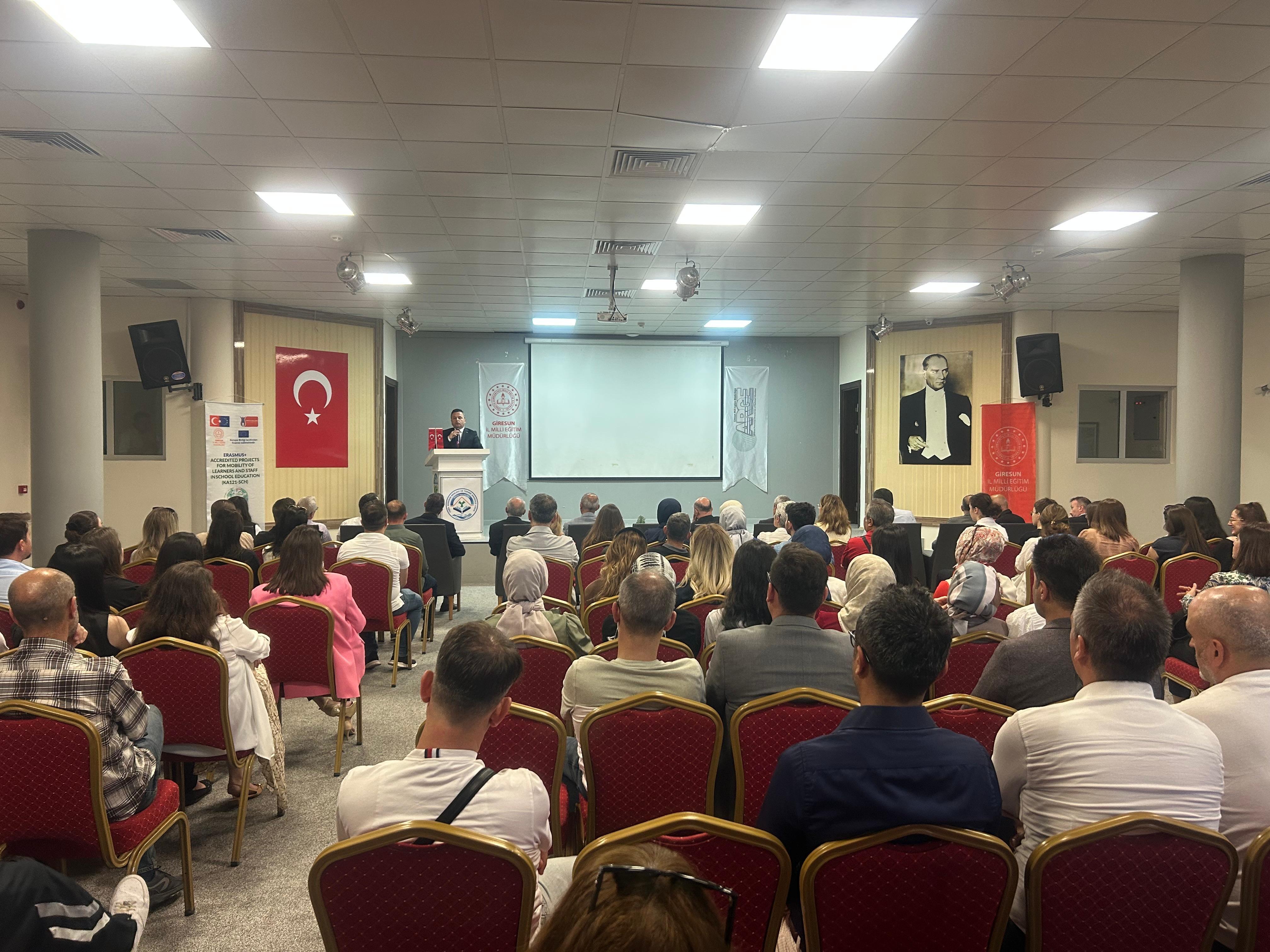 Giresun İl Millî Eğitim Müdürlüğü tarafından yürütülen Erasmus+ Okul Eğitimi ve Yetişkin Eğitimi Akreditasyon projeleri kapsamında, 2024 yılı faaliyetlerinin değerlendirildiği Erasmus+ Akreditasyon Projeleri Kapanış ve Deneyim Paylaşım Toplantısı düzenlendi.