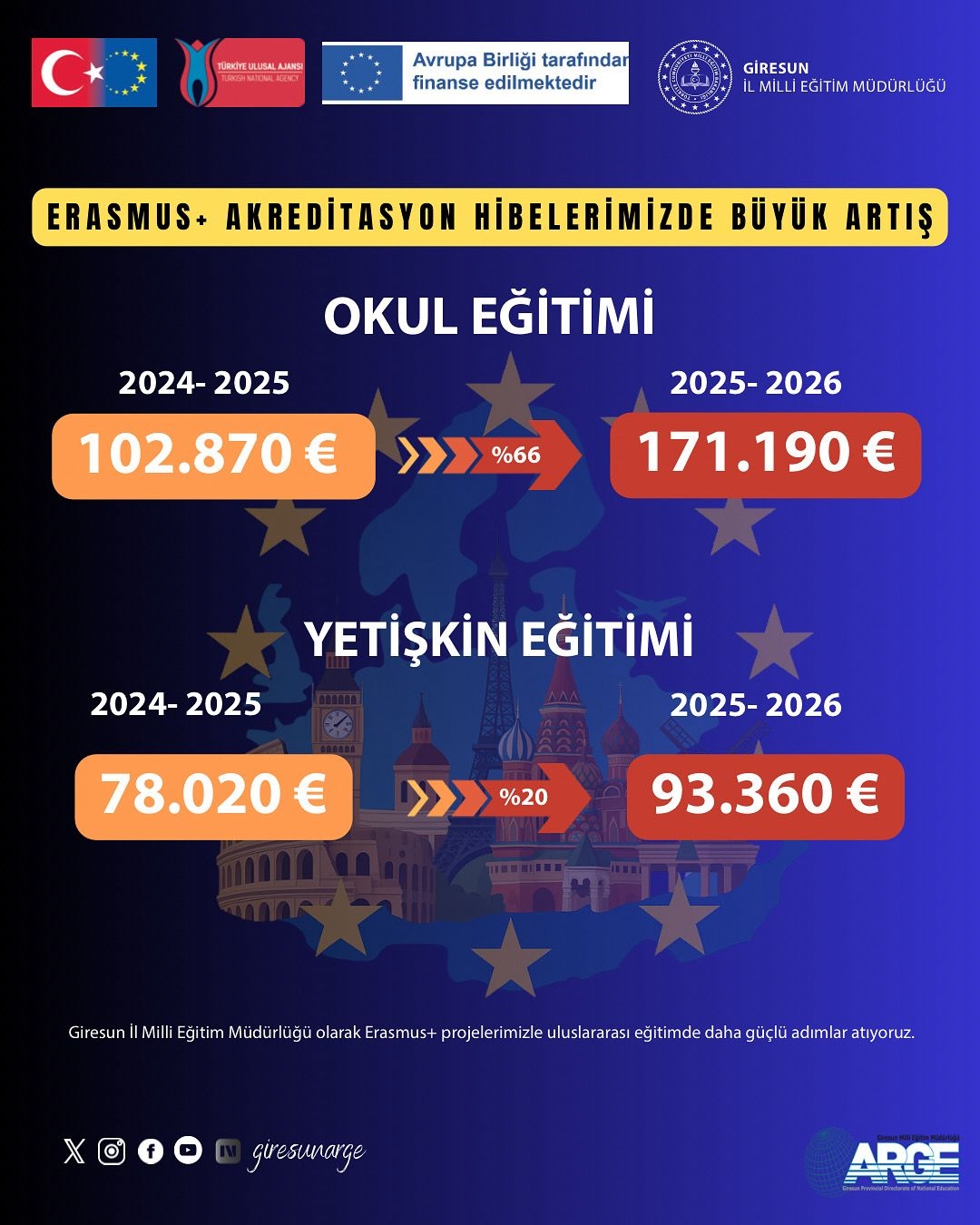 Giresun İl Milli Eğitim Müdürlüğü olarak; eğitime, öğretmenlerimize ve öğrencilerimize sunduğumuz katkıları Avrupa çapında daha ileriye taşımaktan büyük gurur duyuyoruz.
