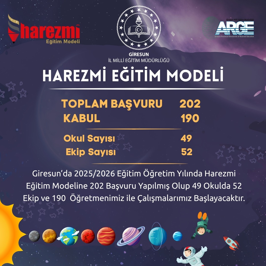 Giresun'da uygulanmaya devam eden Harezmi Eğitim Modeli ile öğretmen ve öğrencilerin birlikte öğrenme, üretme ve paylaşma kültürünü daha da güçlendirmesi hedefleniyor.